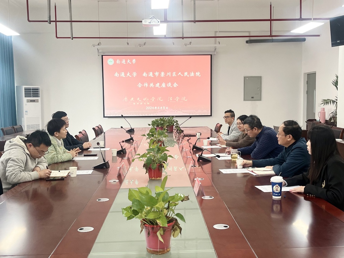 4月8日南通市崇川区人民法院审判委员会专职委员钱徐宁、南通市崇川区人民法院审判管理办公室(审判监督庭、研究室)主任范纪强、南通市崇川区人民法院审判管理办公室(审判监督庭、研究室)法官助理张赟等一行三人到yl8858永利集团yl88858永利中国(法学院)进行座谈交流。我院院长钱荣贵、党总支书记许慈晖、副院长王晓燕、院长助理、法律系主任王菁、实习与实践中心主任王晓峰等参加了座谈。