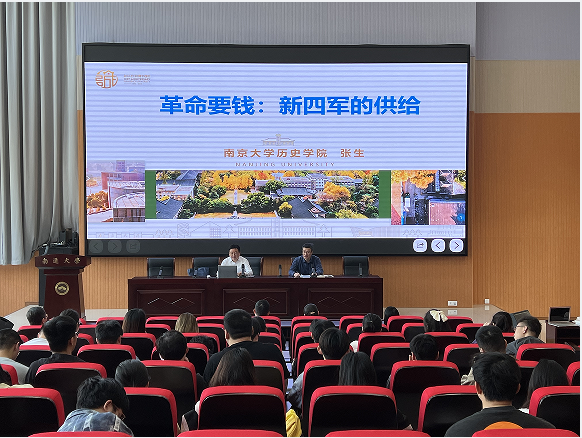 报告中,张生教授围绕抗日战争时期新四军的物资供给、军需调配,探讨抗日根据地政权建设、新四军武装军需补给、军民关系等问题,进一步廓清中国共产党的财经制度建设、组织建设等。张生教授以丰富翔实的史料,生动展现新四军为争取物资所做出的各种努力,指出中国共产党是中华民族伟大复兴的中流砥柱。会后,张生教授与耐心地解答师生疑问,进行互动交流。