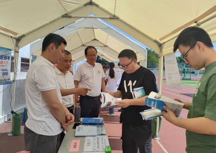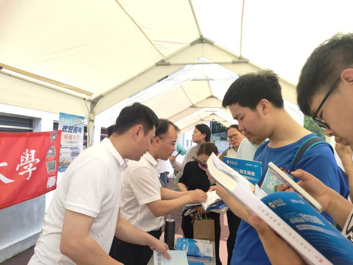 为扎实推进我校招生宣传工作,确保招生政策精准触达考生,6月25日,校党委常委、副校长陆俊杰深入我校南京市二区招生宣传一线,亲切慰问辛勤付出的招生团队成员,并为高三年级考生现场答疑解惑,助力考生明晰报考方向。