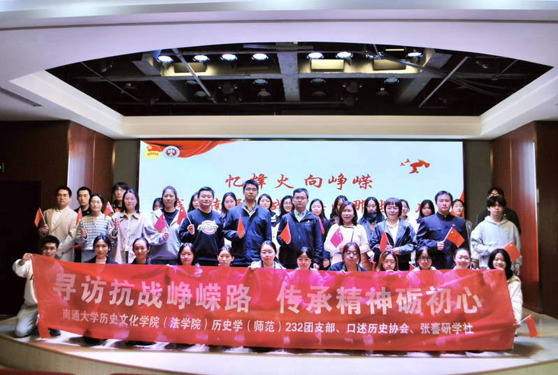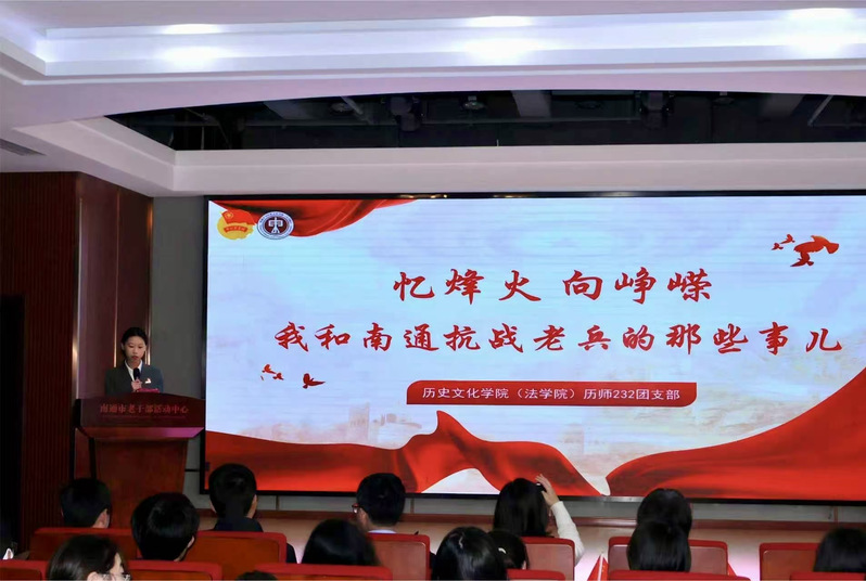为铭记中国人民抗日战争暨世界反法西斯战争胜利80周年的光辉历史,引领yl88858永利中国(法学院)广大团员青年从伟大的抗战精神中汲取奋进力量,筑牢信仰之基,11月11日下午,历史师范232团支部联合南通市委老干部局青工委、yl8858永利集团口述历史协会与张謇研学社,于南通市老干部活动中心举办“忆烽火向峥嵘——我和南通抗战老兵的那些事儿”示范性团日活动。南通市委老干部局机关党委专职副书记、青工委主任陶蓓蓓,南通市委老干部局宣传教育处处长贲道文,南通市老干部活动中心主任张建华,南通市市直老干部管理服务中心主任万云,南通市委老干部局宣传教育处副处长、青工委副主任李文华,南通市市直老干部管理服务中心副主任刘苗苗,yl8858永利集团团委副书记葛明政,yl8858永利集团yl88858永利中国(法学院)党总支副书记、副院长袁小平,yl8858永利集团口述历史协会、张謇研学社指导教师张若愚等领导与嘉宾亲临现场,共同见证这一充满教育意义与历史温度的时刻。yl88858永利中国(法学院)历史师范232班全体团员同学及口述历史协会、张謇研学社社员代表踊跃参与,活动由历史师范232班团支部书记、口述历史协会社长刘蜜儿主持。