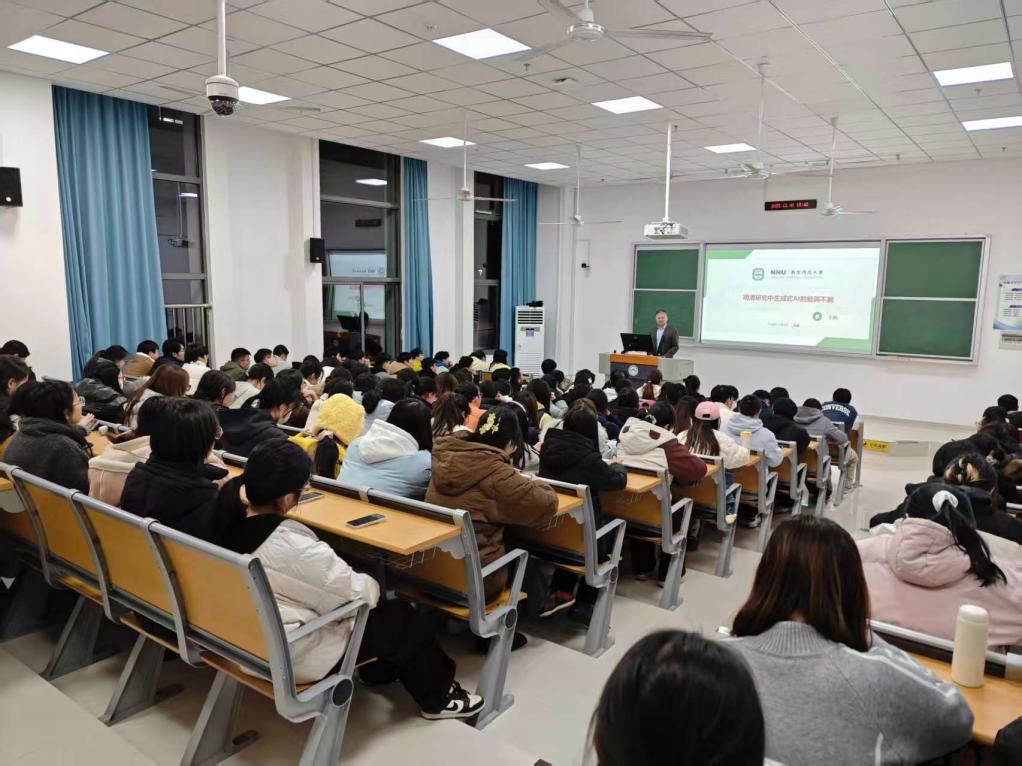 12月2日晚,南京师范大学历史文博学院院长、博士生导师王剑教授应邀为本校师生带来题为“明清史研究中生成式AI的能与不能”的讲座。讲座由yl88858永利中国院长助理张厚军研究员主持,历史系主任徐静玉、副主任羌建等十余名教师,以及历史师范2023级、2024级本科生,2024级、2025级学科历史研究生等近二百人参加了本次讲座。