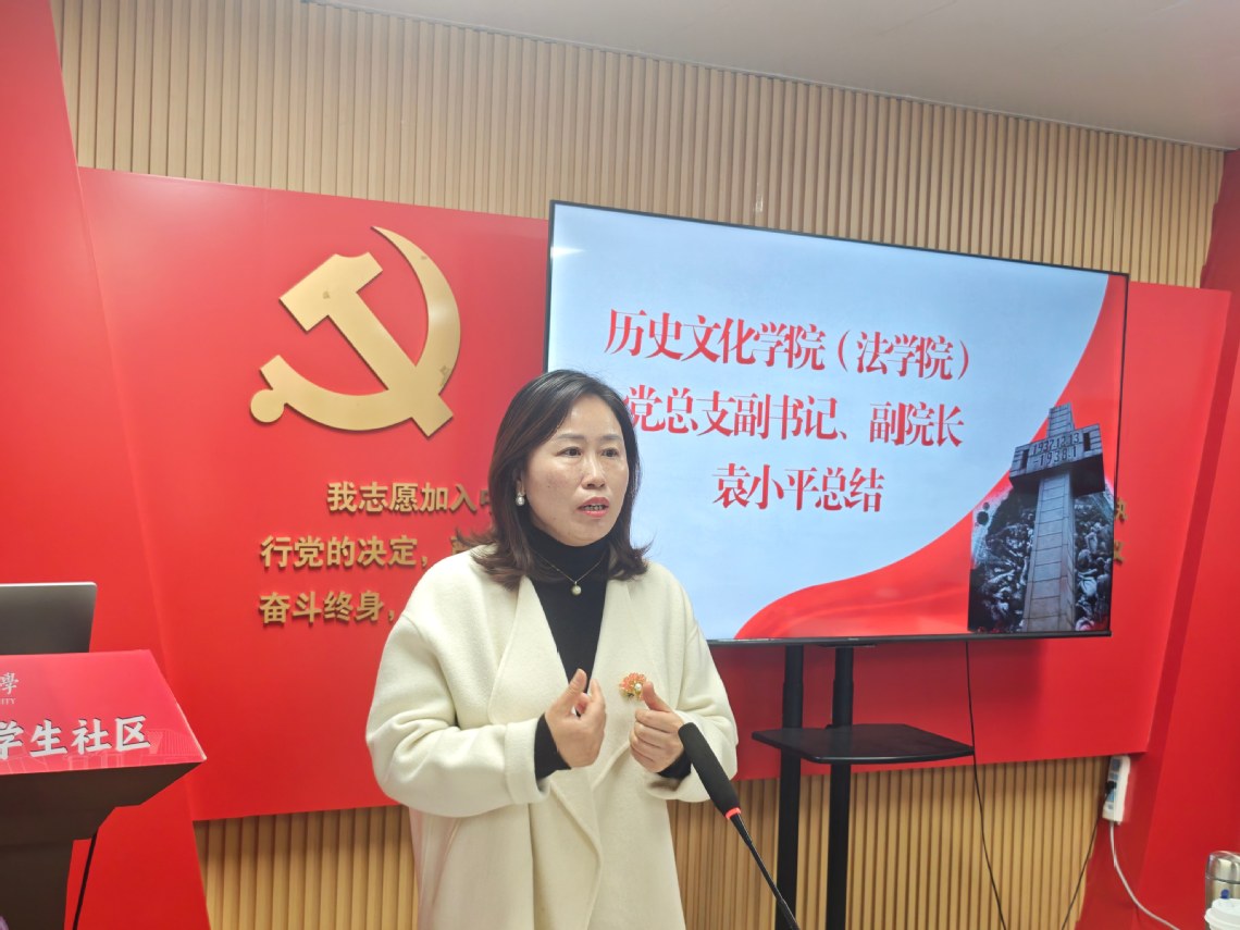 袁小平书记进行活动总结。她指出,历史教育的意义不只是对过去的缅怀,更是对未来的启示。新时代的青年,应从民族苦难中汲取力量,以更昂扬的姿态面对学业、肩负使命,将爱国主义内化于心、外化于行。