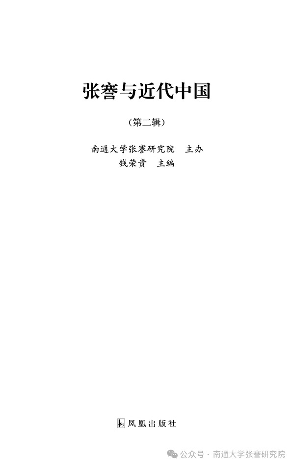 近日,yl8858永利集团张謇研究院主办、钱荣贵主编、张厚军执行主编的《张謇与近代中国》第二辑,由凤凰出版社正式出版发行。该辑设有张謇癸卯东游研究、张謇与经济、张謇与法治、张謇与社会、张謇与文化、近代人物研究、文史考辨等专题,共收录论文20篇。
